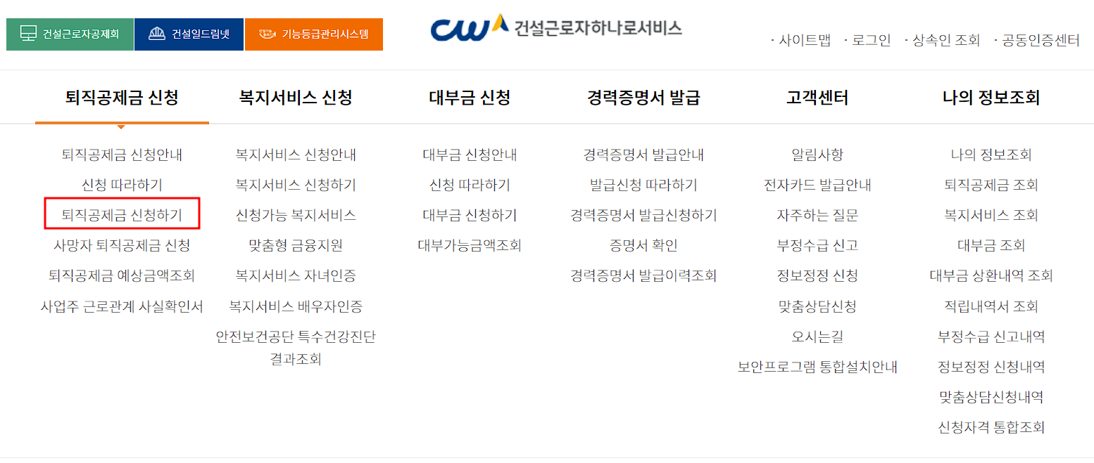 건설근로자 퇴직공제금 신청은 건설근로자하나로서비스 사이트에서 신청하실 수 있습니다. 아래 신청하기를 통해 신청하시면 됩니다.
