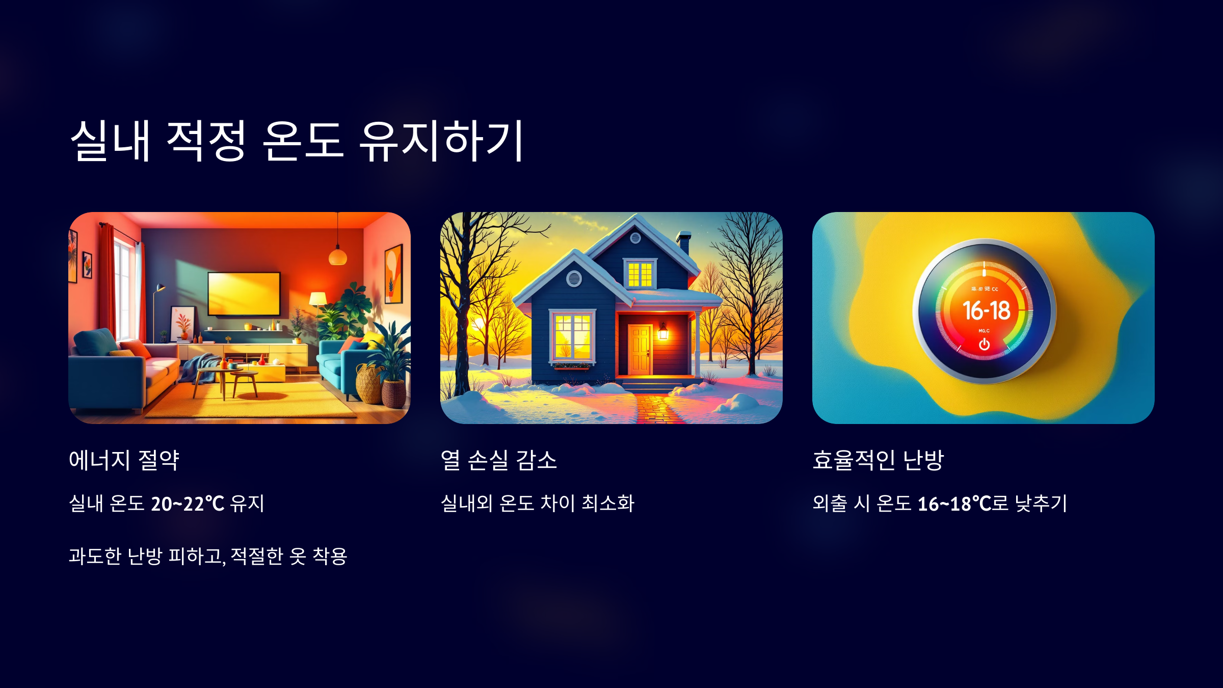 적정 실내 온도 유지, 단열 강화, 보일러 효율적 사용 등의 방법을 통해 난방비 부담을 줄이고 에너지를 절약하세요.