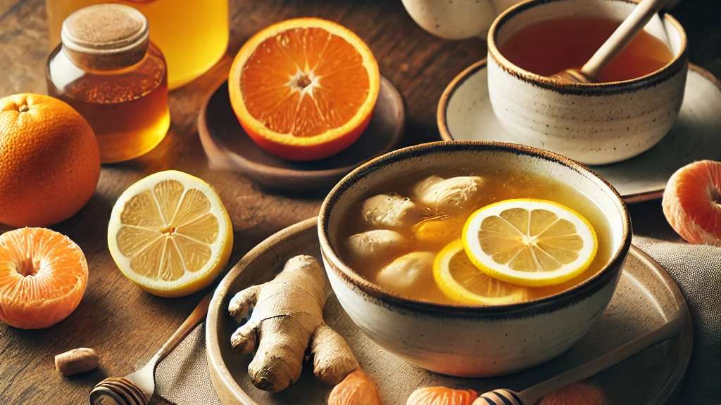 생강, 마늘, 꿀을 활용한 차는 몸을 따뜻하게 하고 염증을 줄입니다.
