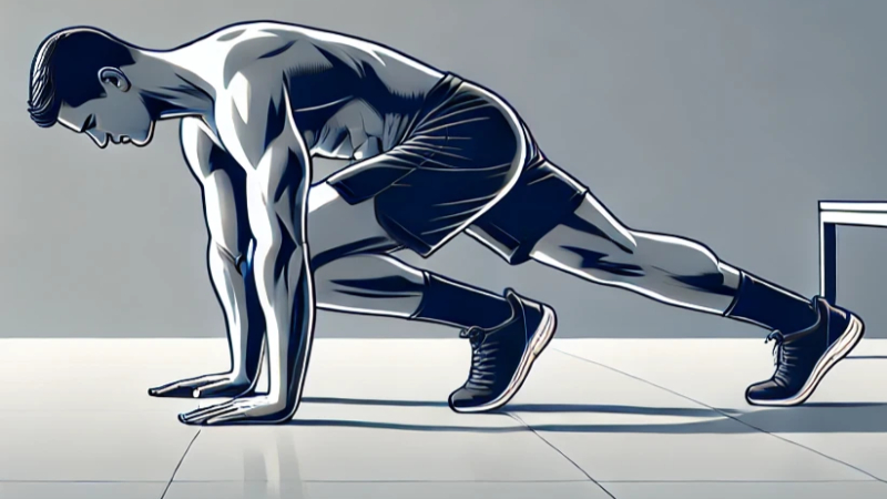 ✅ 방법: 팔굽혀펴기 자세에서 한쪽 무릎을 가슴 쪽으로 당기며 빠르게 교차