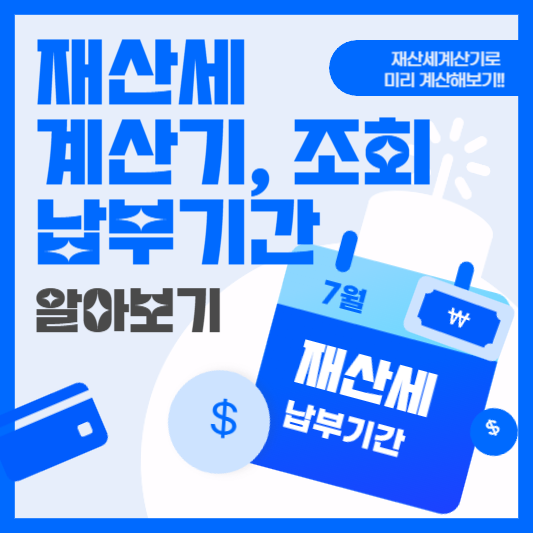 매년 7월은 재산세 납부기간입니다. 아래 내용을 통해서 재산세 계산기를 이용하여 재산세를 미리 계산해 보고 기간을 놓치지 않도록 재산세 조회 납부기간 등을 알아보시기 바랍니다.
