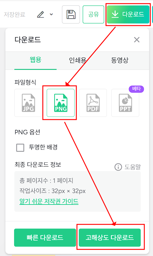 바탕은 단색으로 미리캔버스에서 제공하는 글씨체를 이용해서 간단하게 디자인 해보세요. 디자인이 다 완성이 되면 다운로드를 클릭하고 PNG 파일로 고해상도로 다운로드 받으시기 바랍니다.
