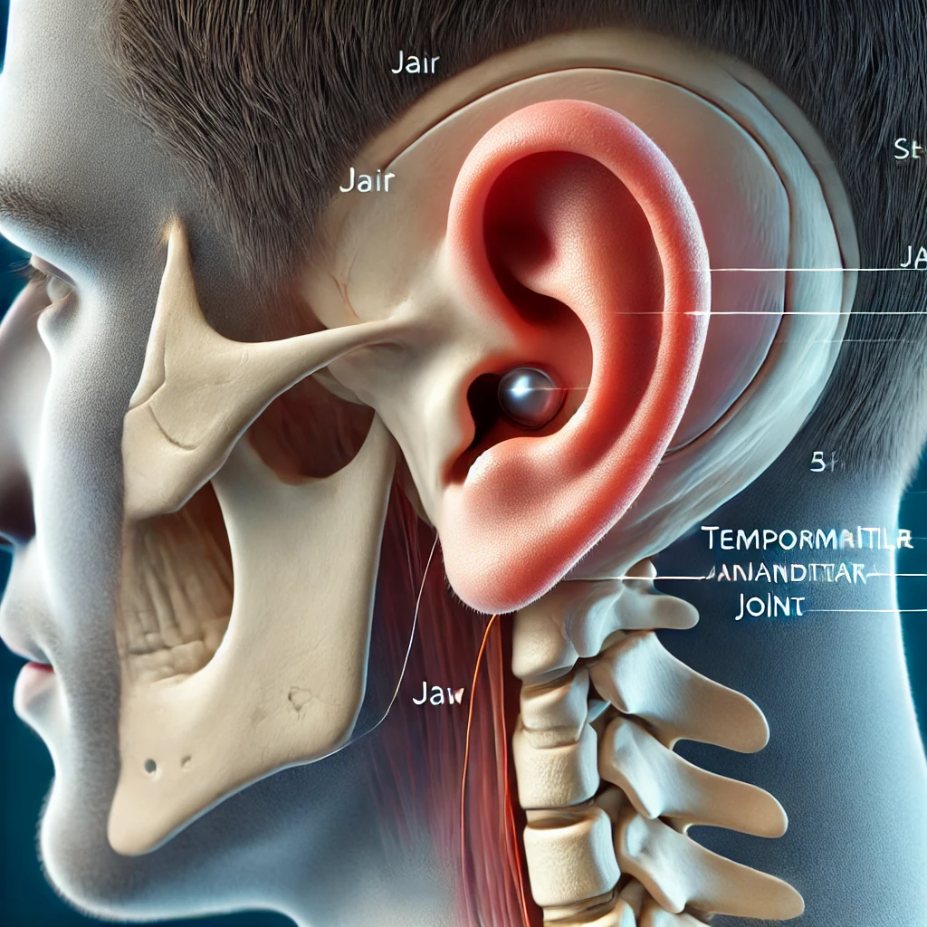 A. 턱 관절은 귀와 인접해 있어 통증이 귀 주변과 머리 근육으로 확산될 수 있습니다.